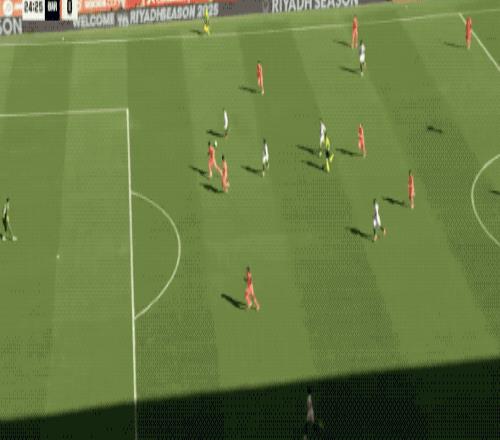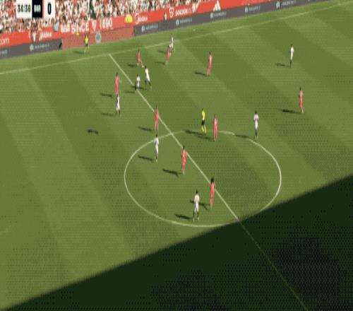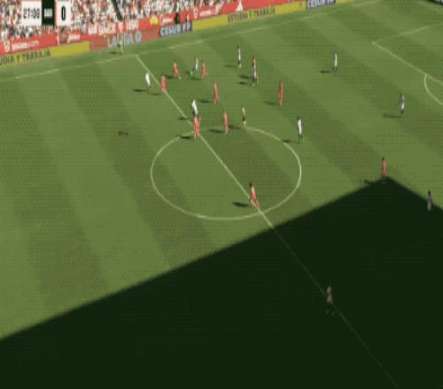 第22分鐘,塞維利亞在巴薩半場(chǎng)連續(xù)傳球,門迪后點(diǎn)的射門稍稍偏出。
